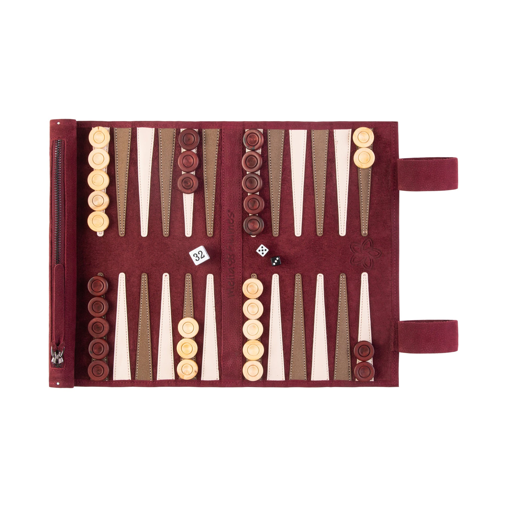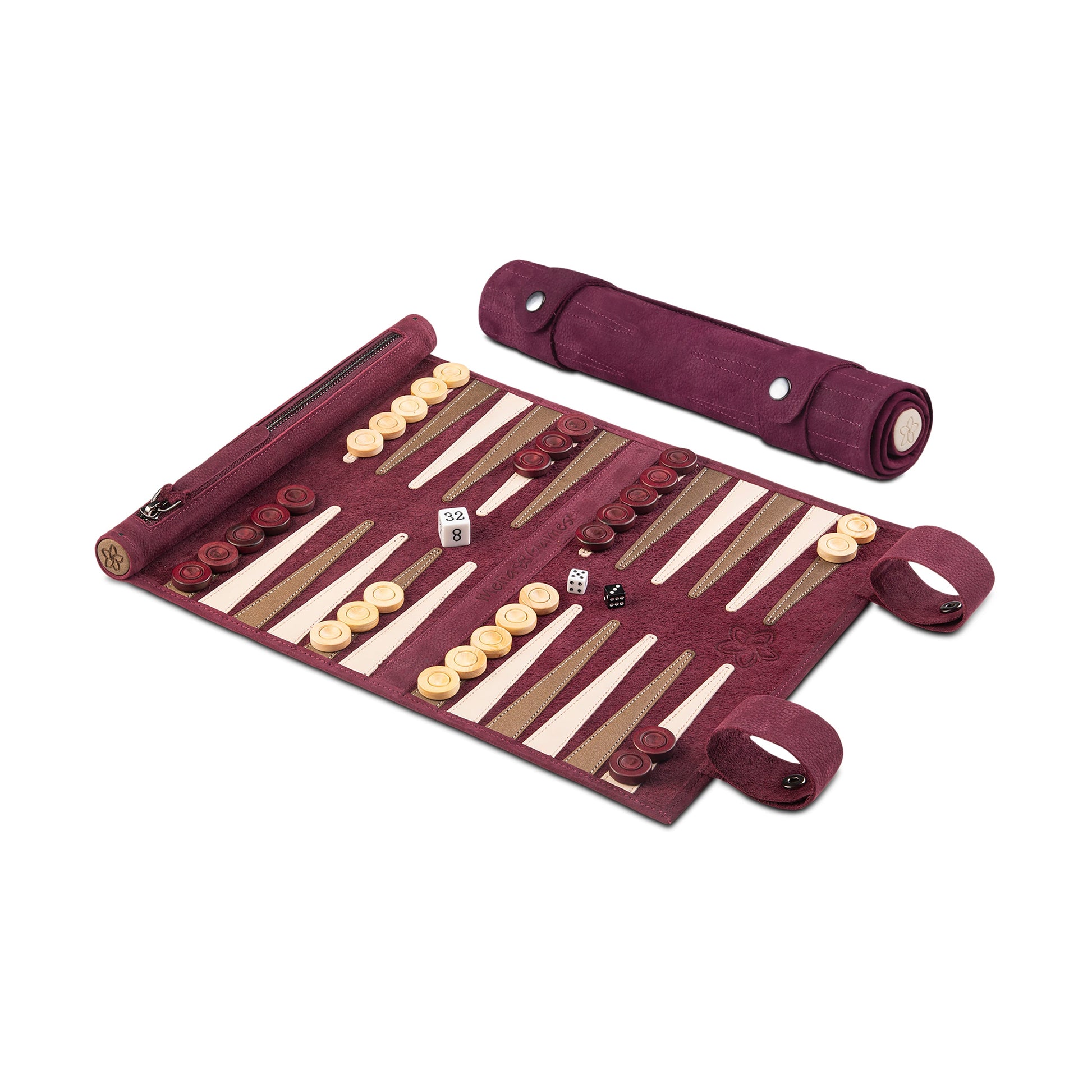 Roll up Leather Backgammon Set - Bordeaux - Travel