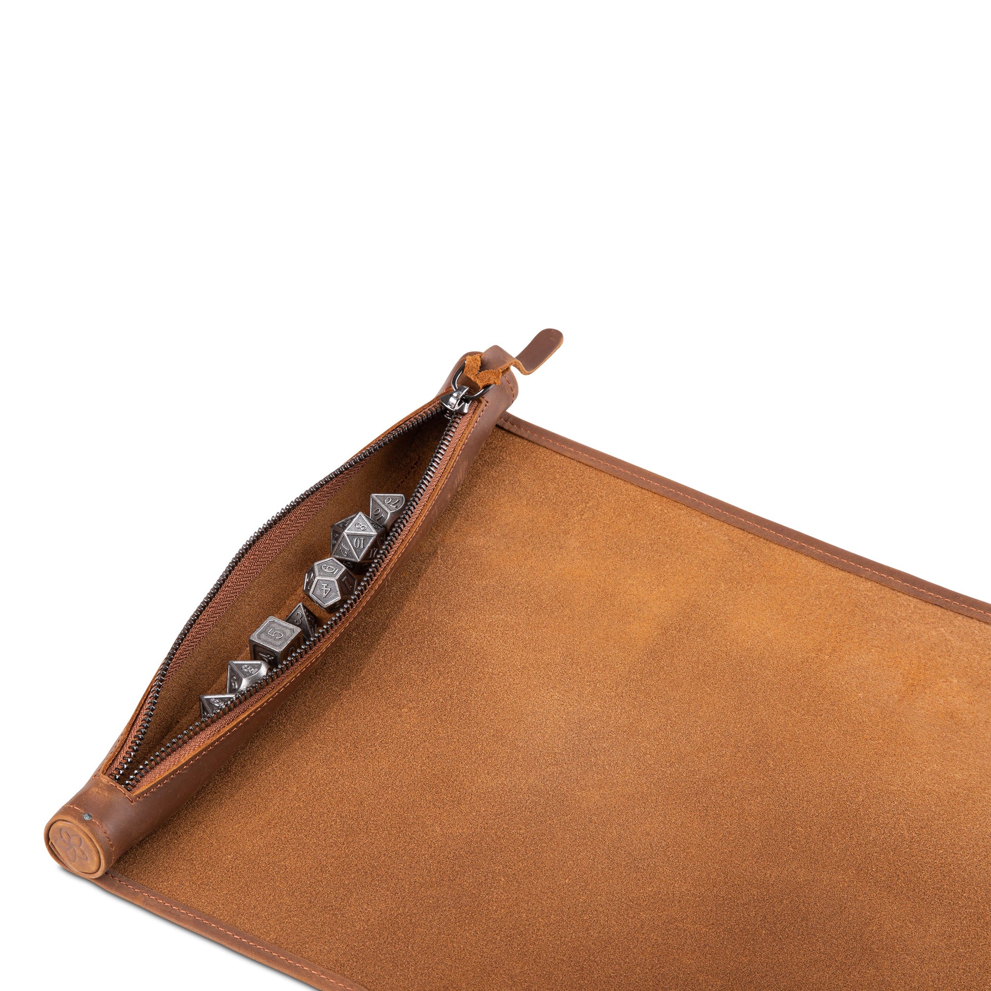 Roll Up RPG Dice Mat including Iron metal set - Tobacco